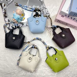 新款mini菜篮子pu小包挂件可爱荔枝纹皮革迷你耳机包丝巾包包挂饰
