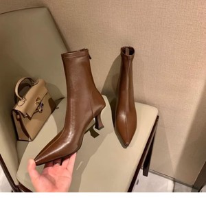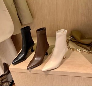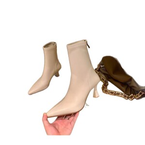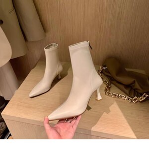 韩版包腿瘦瘦靴2025秋冬新款尖头后拉链弹力靴女士皮靴高跟短靴女