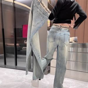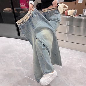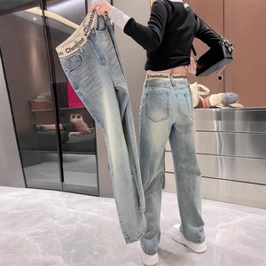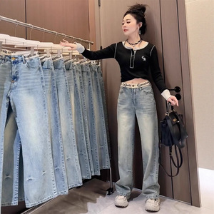 窄版直筒牛仔裤女秋季2025新款大码胖mm显瘦宽松阔腿梨型身材裤子