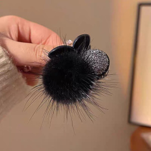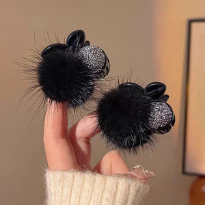黑色樱桃水钻毛绒抓夹-4.5cm【单个装】