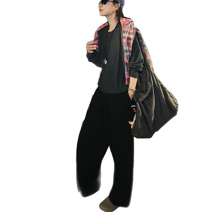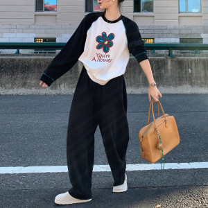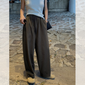 松紧高腰休闲运动百搭修身显瘦弹力直筒阔腿卫裤子女2025秋冬新款