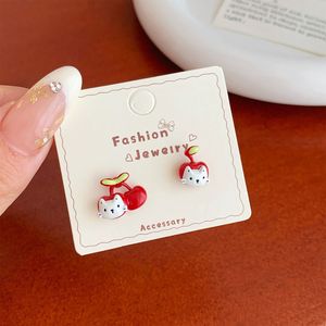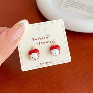 卡通滴油红苹果小狗猫咪耳钉女银针精致甜美趣味可爱百搭学生耳饰
