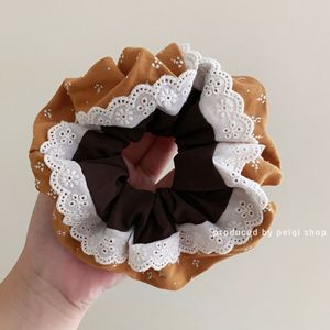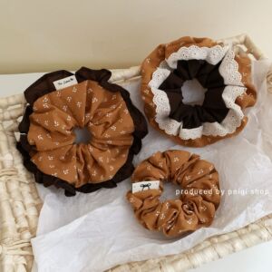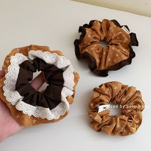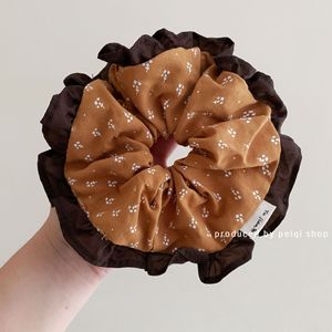 法式复古黄色碎花褶皱花边大肠发圈女通勤百搭低马尾扎发发圈发饰