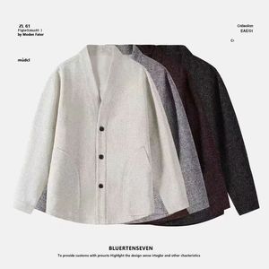 秋季新款老钱风时尚潮流设计感宽松百搭男士开衫外套长裤休闲套装