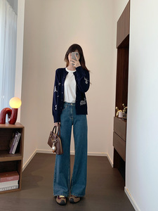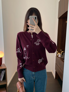 时髦学院风 刺绣软糯羊毛 圆领减龄基础长袖针织衫开衫秋G24166W