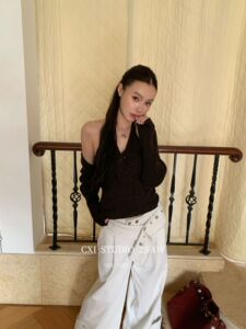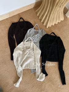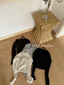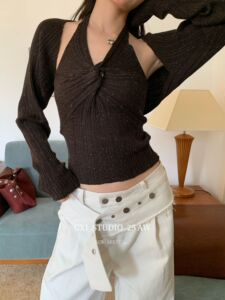 CXI 法式辣妹针织外套女高级感无袖露肩挂脖针织背心外套两件套