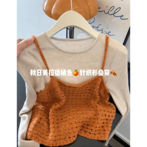 早秋季韩系穿搭女2025新款镂空针织吊带背心叠穿纯色修身打底上衣