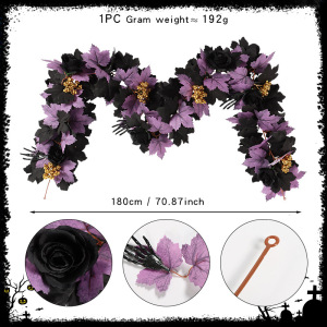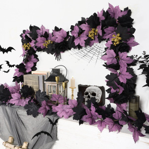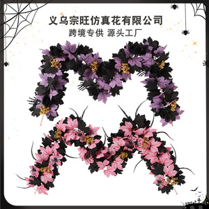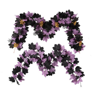 跨境新款万圣节藤条 人造藤条家居橱窗装饰布置仿真紫色枫叶藤条