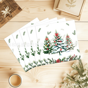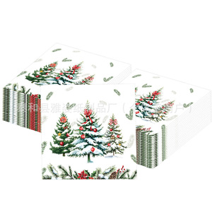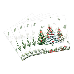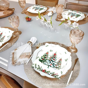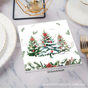 跨境新款白色雪地圣诞树铃铛节日主题一次性派对餐巾纸装饰用品