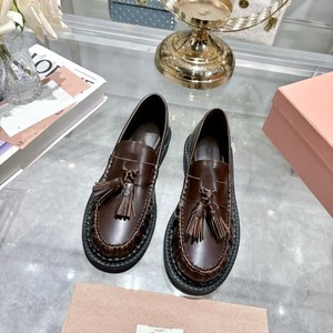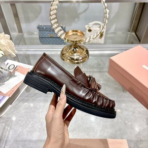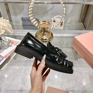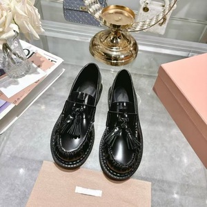 高版miu小皮鞋英伦风25秋漆皮流苏编织褶皱圆头一脚蹬乐福单鞋女