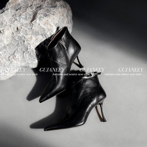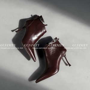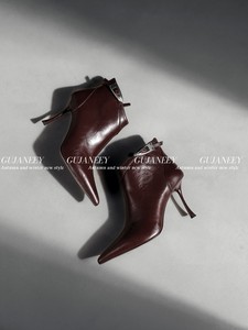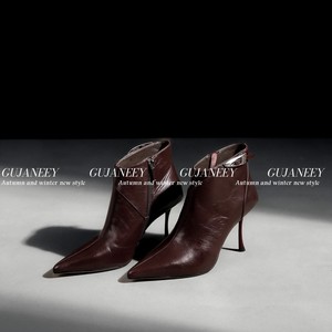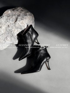 欧洲站女鞋25冬时尚软油蜡胎牛皮尖头气质款侧拉链细高跟踝靴短靴