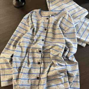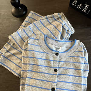 日系蓝色条纹德绒睡衣女士秋冬季新款大码加绒加厚保暖家居服套装