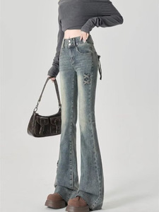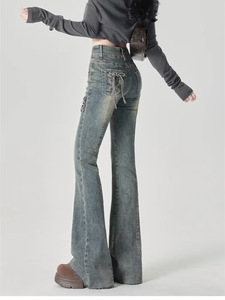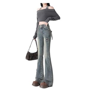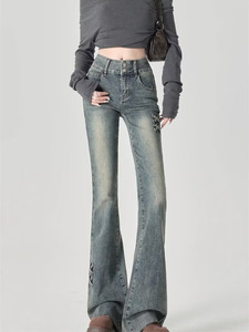 复古高腰微喇叭牛仔裤女2025春秋薄款新款修身小个子爆款马蹄裤子