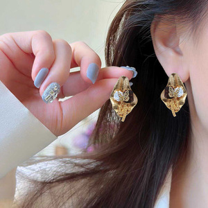 法式轻奢气质小众设计个性耳环甜酷风耳饰高级感珍珠蝴蝶方钻耳钉