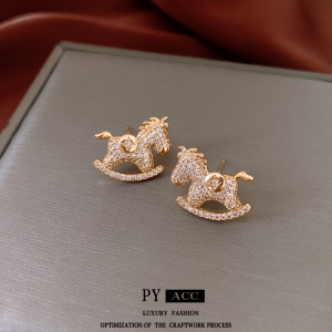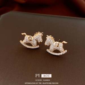 卡通可爱锆石小马耳钉轻奢高级感精致时尚耳环设计感小众耳饰批发