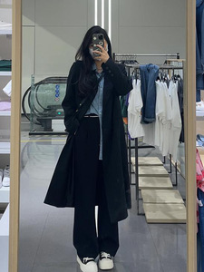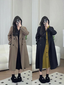 感休闲微胖mm英伦复古宽松大码中长款西装过膝风衣外套女早秋