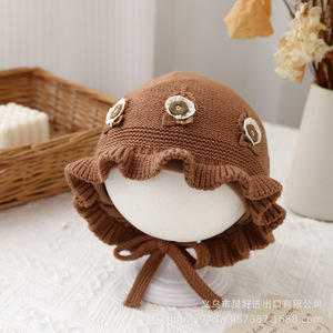 婴儿帽子秋冬季可爱洋气公主风毛线帽女宝宝小月龄冬款针织护耳帽