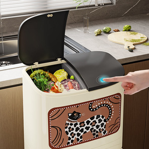 免弯腰厨房垃圾桶中古风大容量可移动带盖干湿分离脚踩按压垃圾筒