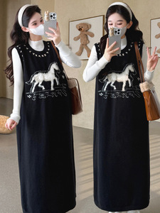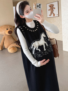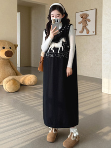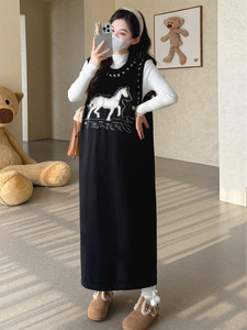 2025秋冬新款韩版时尚减龄显瘦提花小马马甲裙长袖打底衣孕妇套装