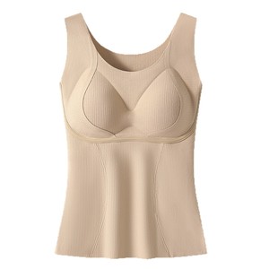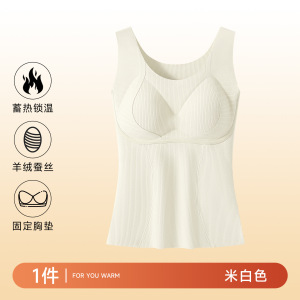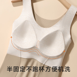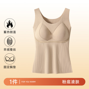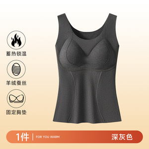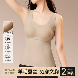 羊毛蚕丝保暖吊带背心女加绒加厚发热无痕自带胸垫一体内衣秋冬季