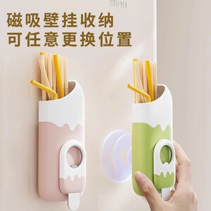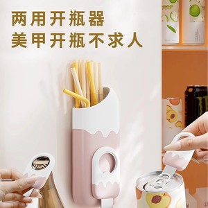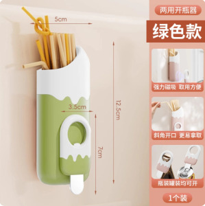 2025新款磁吸壁挂吸管收纳盒多功能两用开瓶器冰箱侧壁挂式收纳盒