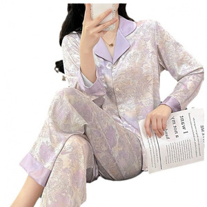 【紫黛】冰丝睡衣女春夏秋薄款长袖气质显瘦网红家居服可外穿