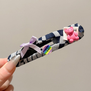 7#牛仔蓝+红条纹双蝴蝶结鸭嘴夹 夹子11cm 蝴蝶结约9cm
