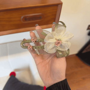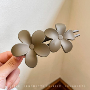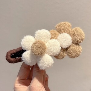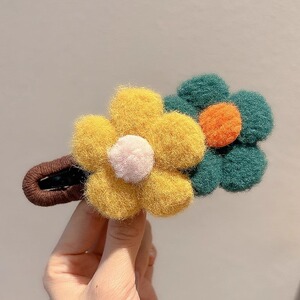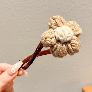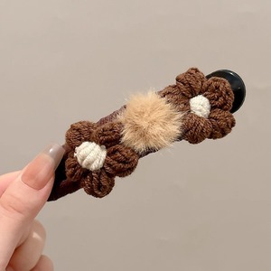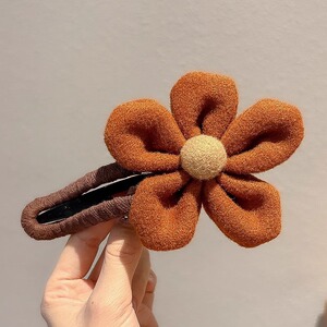 8#咖色毛线花朵12cm鸭嘴抓夹