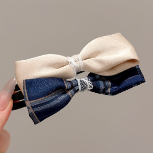 19#米+蓝格双蝴蝶结约9cm-夹子约11cm