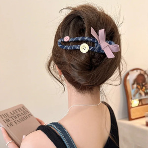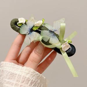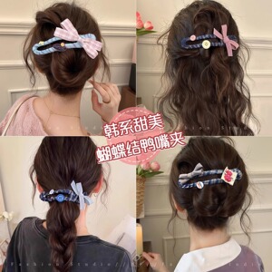 可爱蝴蝶结鸭嘴夹韩系高级感甜美发夹女后脑勺盘发发卡高颅顶头饰