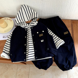 男童绣花字母连帽马甲卫衣裤子三件套2025秋季新款中小儿童女宝宝