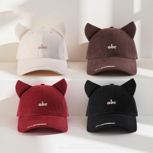 日系小众设计猫耳朵帽子女潮牌嘻哈街头棒球帽男显脸小遮阳鸭舌帽