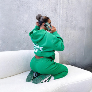 2025秋冬新款欧美跨境卫衣女式套装时尚运动LOGO长袖套头连帽卫衣