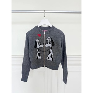 25ss南油高定/买手店小众 CB设计品牌灰色狗狗拉链外套针织衫ins