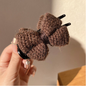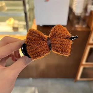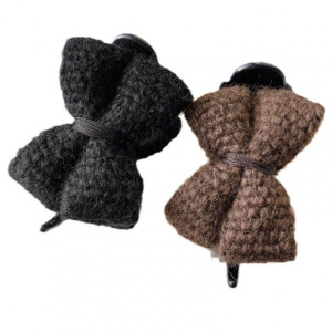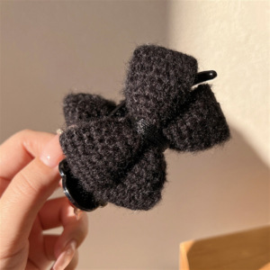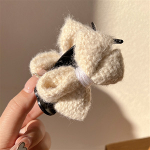 秋冬针织毛线蝴蝶结发夹女后脑勺抓夹鲨鱼夹丸子头发卡高马尾发饰