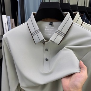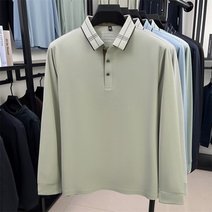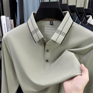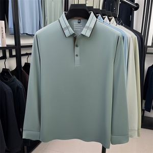 桑蚕丝长袖t恤中年男士秋冬新款宽松舒适柔软透气百搭翻领POLO衫