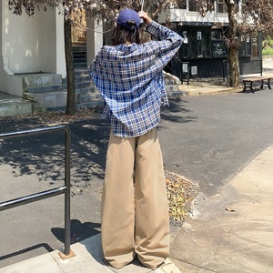 美式复古|拼接弯刀设计|宽松阔腿工装裤女牛仔布长裤