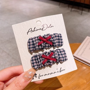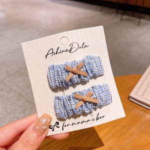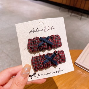 韩系儿童秋冬暖色布艺褶皱毛毛虫基础发夹女童格纹侧边夹亲子边夹