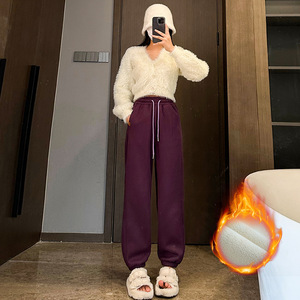 【反季特卖】加绒加厚运动休闲卫裤女冬季保暖摇粒绒束脚哈伦裤