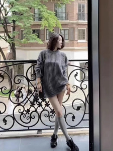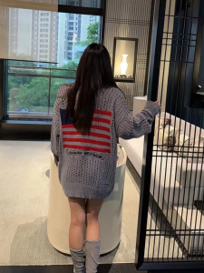 高品质~2025秋冬新款镂空宽松休闲时尚百搭圆领长袖套头针织衫女
