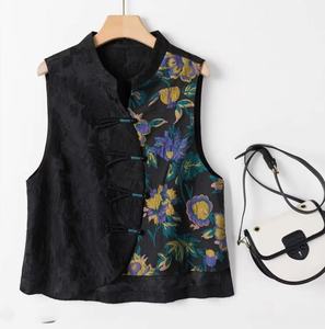 新中式国风香云纱冠乐皱提花马甲盘扣设计无袖版型显瘦坎肩女
