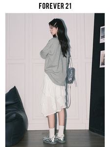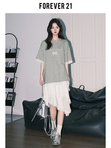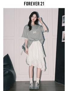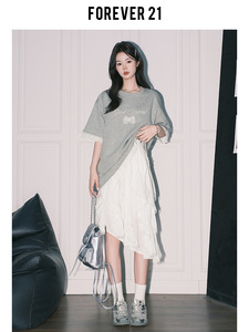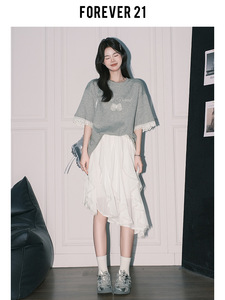 Forever21夏日A字不规则半身裙女白色高腰度假风蕾丝蛋糕短裙