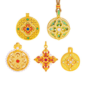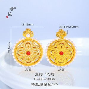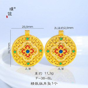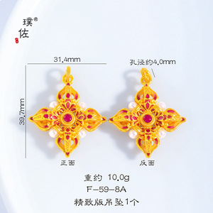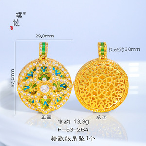 璞佐金店同款沙金diy配件珐琅彩镶钻四合如意金刚杵罗盘吊坠项链