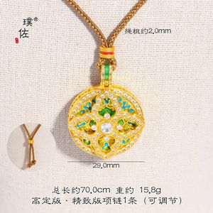绿色镶钻四方迎福罗盘咖色如意绳项链1条