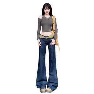 美式复古|不规则腰头设计|后翻袋微喇牛仔裤女牛仔布