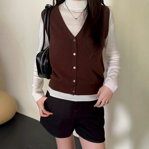 深V领针织衫马甲女全羊毛秋季新款叠穿坎肩无袖背心开衫毛衣8031