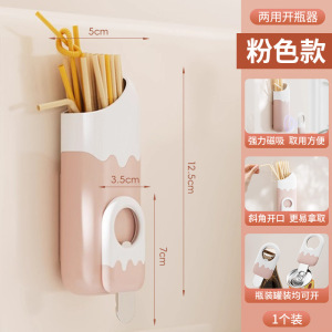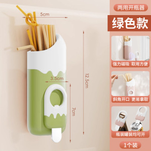 磁吸壁挂吸管收纳盒多功能两用开瓶器便捷拿取冰箱侧壁挂式收纳盒