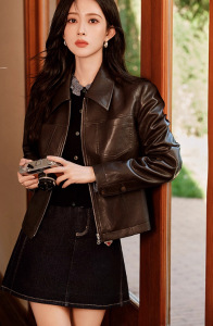 皮衣2025秋新翻领显瘦夹克甜酷短外套3G9110321