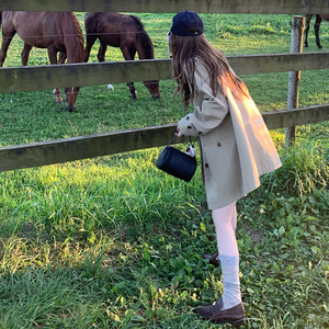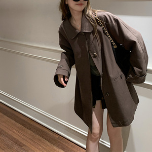诺丁山街角’质感满满韩系翻领小个子中长款风衣外套女秋季