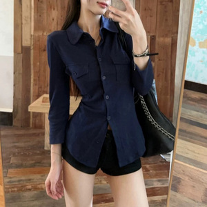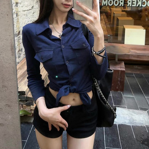Moses Queen/魔西女王纯欲风翻领长袖衬衫微胖收腰显瘦设计感上衣